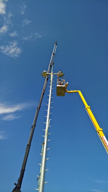 Es wurden 4 jeweils 16 Meter hohe Masten mit je 2 Planflächenstrahler aufgestellt.