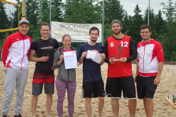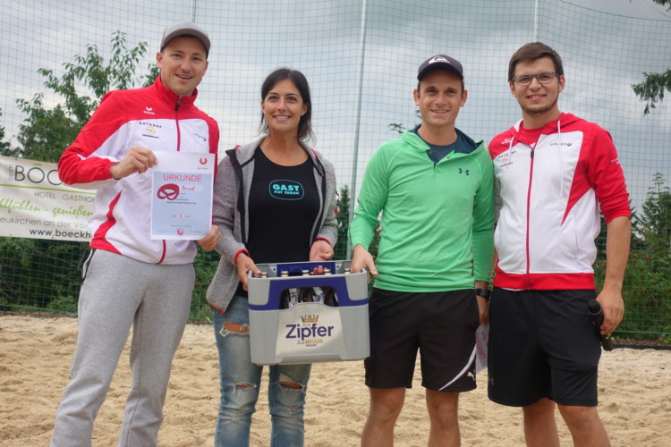 Nach der Gruppenphase und zwei kurzen Regenpausen, spielten die Goldhaubengruppe (Ungenach), Pascal mag Bosner(Gampern), Here comes the Boom (Puchkirchen) und Ad Blocker (Puchkirchen) um den Einzug ins Finale. Nach dem Halbfinale, wo sich die Goldhaubengruppe und Here comes the Boom durchsetzen konnten, wurden die Ränge 11 – 3 ausgespielt. Nach einem spannenden Finale auf 2 gewonnene Sätze holten sich Here comes the Boom den Sieg des Beachvolleyballturniers 2017. Rang 3 holten sich Pascal mag Bosner und Rang 4 ging an Ad Blocker.